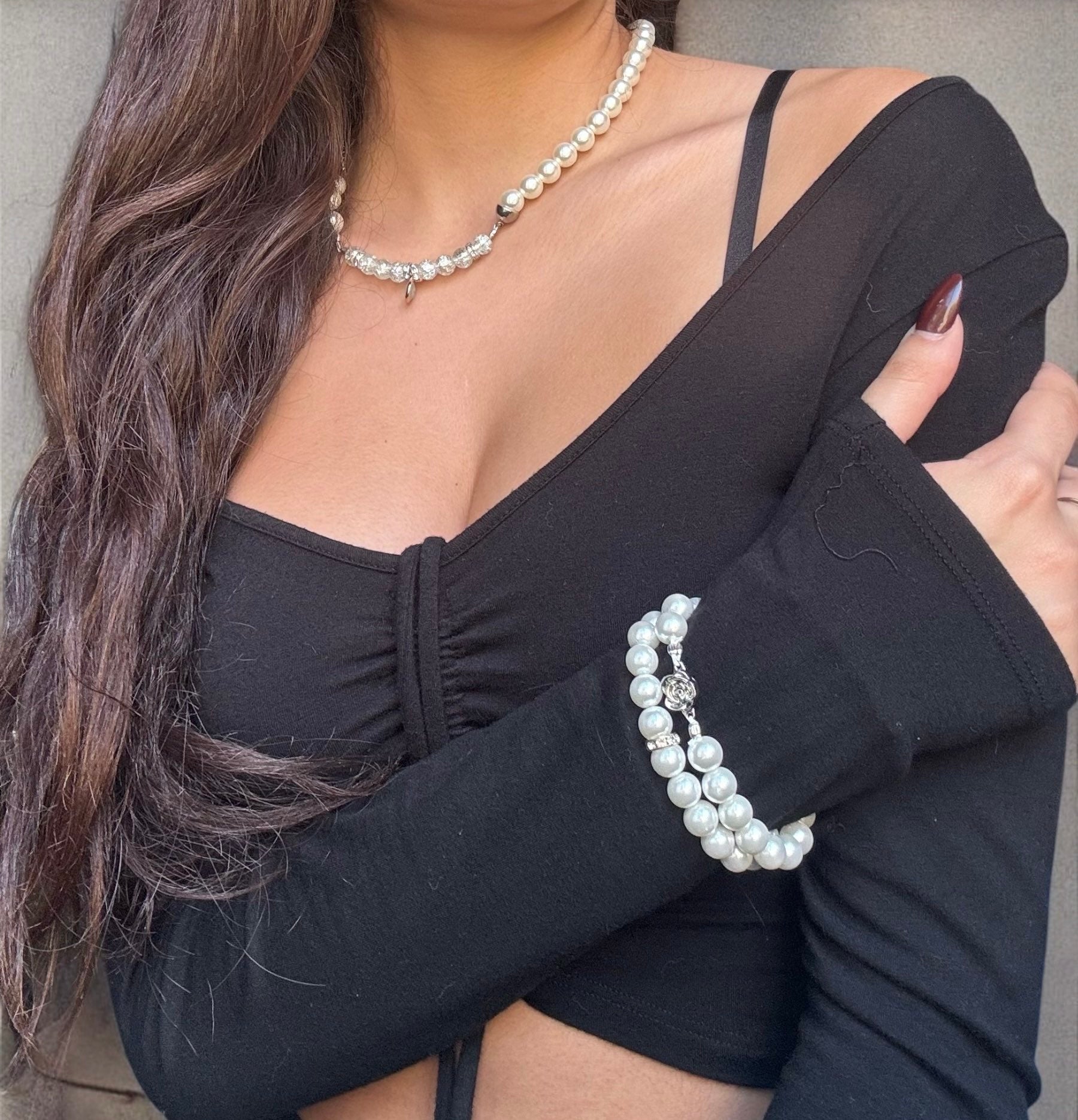 This "Safety First" necklace expertly combines elegance and edge with its unique design featuring half pearl and half crystal beads paired seamlessly with a half safety pin chain. The blend of classic pearls and sparkling crystals offers a refined aesthetic, while the safety pin element adds a modern, industrial touch. Perfect for those seeking a statement piece that balances sophistication with contemporary style. This piece will be limited, so get it soon!